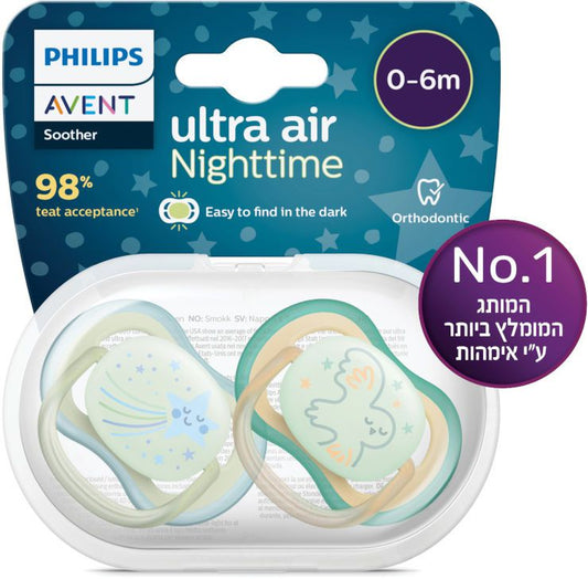 זוג מוצצי סיליקון זוהרים בחושך 6-18 חודשים Avent Ultra Air Night -