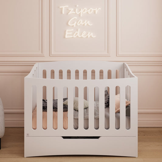 מיטת תינוק מעוגלת 3 ב 1 רקפת לבן אקרילי