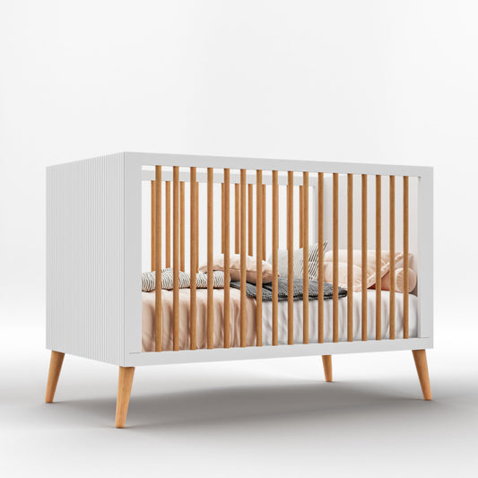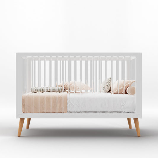 10% הנחהמיטת תינוק סביון לבן שילוב עץ בוק